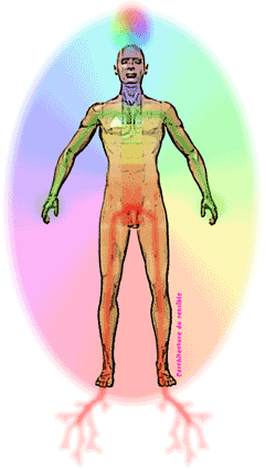 Il impose les mains sur chaque chakra, sans les toucher, conscient qu'il agit ainsi